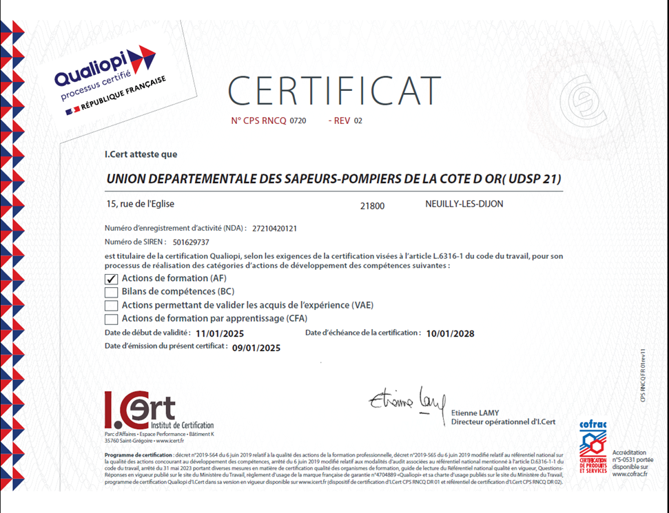 L'Union Départementale détient, de par son affiliation à la FNSPF, une habilitation pour réaliser ces formations.